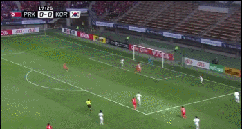 比赛第17分钟,金润美前点甩头攻破韩国大门,朝鲜女足1-0领先韩国女足。