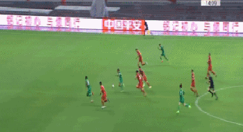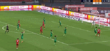 埃尔克森面对传中球,突然跃起倒挂金钩射门,皮球被侯森化解,随后由于武磊补射时已经处于越位位置,所以进球无效。