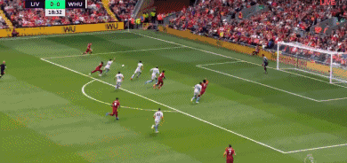 第19分钟,萨拉赫禁区内推射空门建功,利物浦1-0西汉姆!