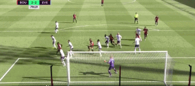 第79分钟,主队右侧艾比开出角球,卡勒姆-威尔逊禁区中路头球攻门被左立柱挡出,阿克门前近距离左脚推射破门扳平,2-2。