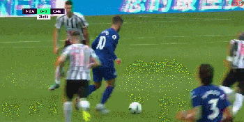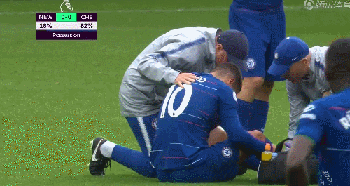 第20分钟,迪亚梅防守中踩到阿扎尔小腿,阿扎尔接受队医治疗后又投入比赛。
