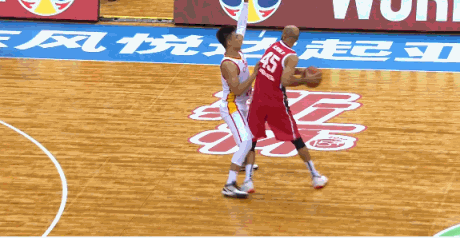 中国男篮核心球员易建联此役没有上场,在场边支持男篮,易建联这个夏天因为伤病至今没有为中国男篮出战一场比赛。