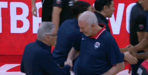 值得一提的是,赛前日本主帅拉马斯找到了波波维奇,送给了波波维奇一个小东西(具体是啥不清楚),可能是一件特别的礼物,波波维奇微笑着收下了。