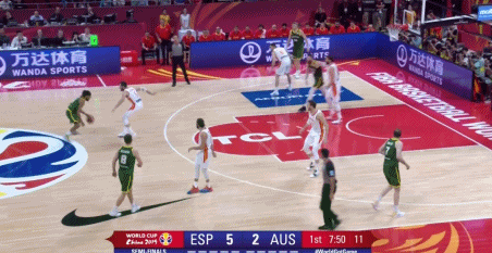 首节双方开场节奏都很快,但是命中率都不高,澳大利亚依靠米尔斯的连续得分6-8咬住比分;此后双方开始对飙三分,比分继续为维持在15-14,西班牙保持微弱领先,首节西班牙22-21澳大利亚领先1分!次节上来双方的防守开始加强了不少,西班牙陷入了得分慌,单节只得10分,半场澳大利亚37-32反超比分。