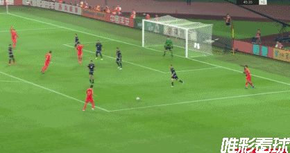46分钟,吴曦头球破门,国足半场6-0领先关岛。