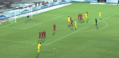 第26分钟,林良铭左侧定位球开入禁区,禁区内中国队连续两点争顶都没能顶到。