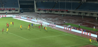 第55分钟,黄政宇角球开入禁区,蒋圣龙高高跃起头球攻门,维娜塔扑球脱手,随后蒋圣龙乱战中抽射再次被防守队员挡出底线。第56分钟,黄政宇角球开入禁区,对方队员解围不远,童磊禁区外凌空抽射,皮球直入球门右下角!中国国奥1-0印尼!