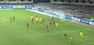 第70分钟,中国队战术角球开出,陈彬彬右路起球传中,张玉宁禁区内头球攻门门对方门将没收。