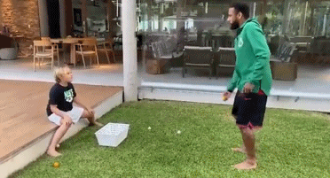 在Ins上,内马尔发了一段视频。在视频中,内马尔陪儿子卢卡练习头球能力。内马尔把乒乓球扔向卢卡,卢卡则用头将乒乓球顶走。