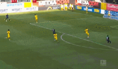 第90分钟,维特塞尔送出长传,桑乔走右侧一路杀入禁区,他选择自己直接推射将球打进,多特蒙德6-1帕德博恩!