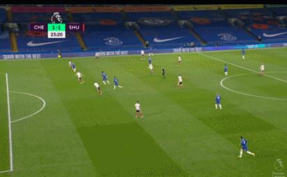 第35分钟,齐耶赫右路接队友战术角球回敲,起脚送出长传,准确的把球送到左门柱前,奇尔维尔近距离包抄推射破门,2-1。上半场切尔西2-1领先谢菲联。