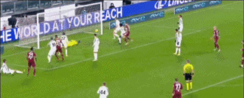 第57分钟,尤文获得角球机会。迪巴拉左侧角球开到禁区内被解围,夸德拉多外围迎球一脚抽射,皮球直飞球门死角!但裁判观看VAR后表示博努奇在越位位置干扰门将在先,进球无效!