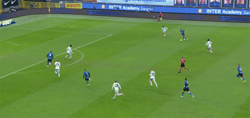 第35分钟,桑切斯弧顶低射被封堵,随后阿什拉夫得球后兜射攻门打高。第40分钟,桑切斯角球传中被解围,布罗佐维奇外围劲射攻门被挡出底线。第45分钟,布罗佐维奇中圈长传,阿什拉夫弧顶得球后稍作调整低射破门,国米2-0领先。