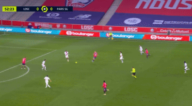 下半场补时5分钟。比赛第92分钟,里尔获得前场右侧任意球吊入禁区,被巴黎球员头球解围。