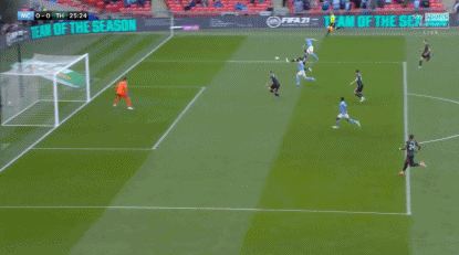 第71分钟,德布劳内弧线球挑传禁区左侧,费尔南迪尼奥头球攻门被洛里没收。1分钟后,德布劳内直塞,斯特林禁区左侧下底回敲,京多安跟进左脚抽射打偏。