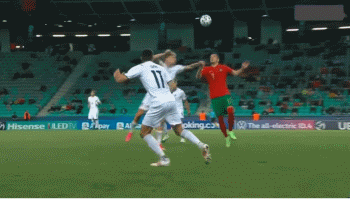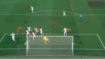 第6分钟,葡萄牙早早就首开纪录。葡萄牙右侧角球传中送到前点,莫塔高高跃起倒勾破门。这个倒勾,颇有点C罗当年对尤文倒勾神仙球的感觉。