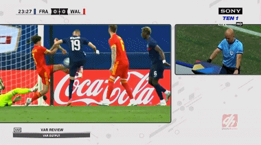 第23分钟,法国开出左侧角球,博格巴头球攻门被门将扑出,本泽马在门前停球后抽射,内科-威廉姆斯用手将球挡下。经过VAR回放后,主裁判吹罚点球,并且将内科-威廉姆斯红牌罚下,威尔士场上只剩10人。第27分钟,本泽马主罚点球,但门将沃德判断对了方向将点球扑出。