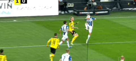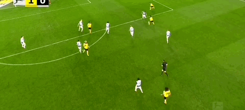 比赛进行到第21分钟,多特蒙德开出前场定位球,比勒菲尔德球员解围不远,贝林厄姆拿球后回撤到大禁区弧顶处,随后把球传给右路无人盯防的达胡德。达胡德不做调整,直接一脚把球踢到门前,沃尔夫中路跟进把球打进,1-0,多特蒙德率先打破僵局。