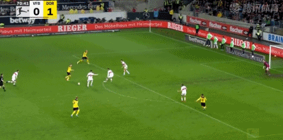 第70分钟,罗伊斯横传,布兰特禁区前劲射破门,斯图加特0-2多特蒙德!