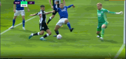 第34分钟,纽卡斯尔获得角球机会,球开到后点,舒梅切尔扑救失误,吉马良斯倒地捅射破门!纽卡斯尔1-1莱斯特城!