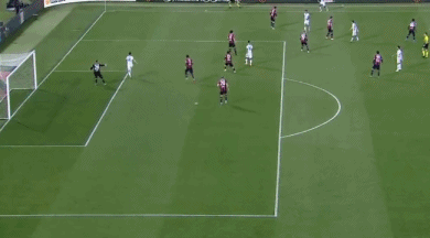 第81分钟,佩里西奇后场边线球掷回禁区,拉杜接球失误没能踢到球,桑索内门前捡漏将皮球推进球门,博洛尼亚2-1反超。