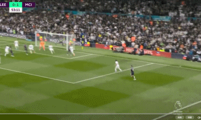 第89分钟,格尔哈特直传,詹姆斯单刀杀入禁区晃过埃德森推射空门,迪亚斯门线上将球解围。终场伤停补时阶段,斯特林带球突入禁区被解围,皮球来到禁区弧顶附近,费尔南迪尼奥跟进低射破门,曼城锁定胜局,4-0!全场比赛结束,曼城客场4-0轻取利兹联。