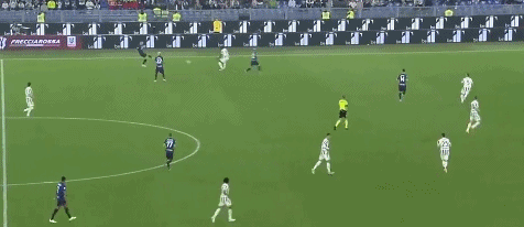 随着主裁判一声哨响,上半场比赛正式开始,第6分钟,国米取得领先!右路角球开出后第一点被顶出,随后左侧巴雷拉弧顶位置拿球内切世界波球进。国米1-0尤文。