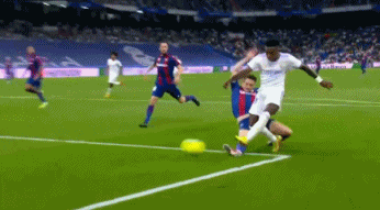 第45分钟,莫德里奇直塞,维尼修斯在禁区左侧小角度射门得分,皇马4-0!