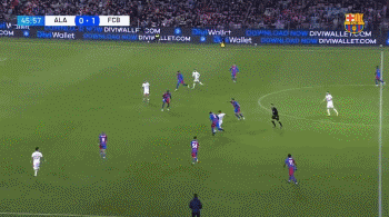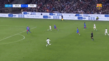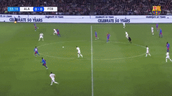 34分钟时加维中路直传,登贝莱禁区左侧左脚大力低射,皮球飞入远端底角。1-0,巴萨首开纪录!