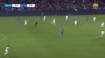 72分钟时,巴萨将比分追为2-2平局。阿达马-特劳雷禁区右侧右脚射门,皮球被门将扑了一下后,变成吊射坠入网窝中。