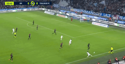 比赛第41分钟,图卢兹球员尼古拉森不慎自摆乌龙,将球攻入自家大门,马赛2-0。