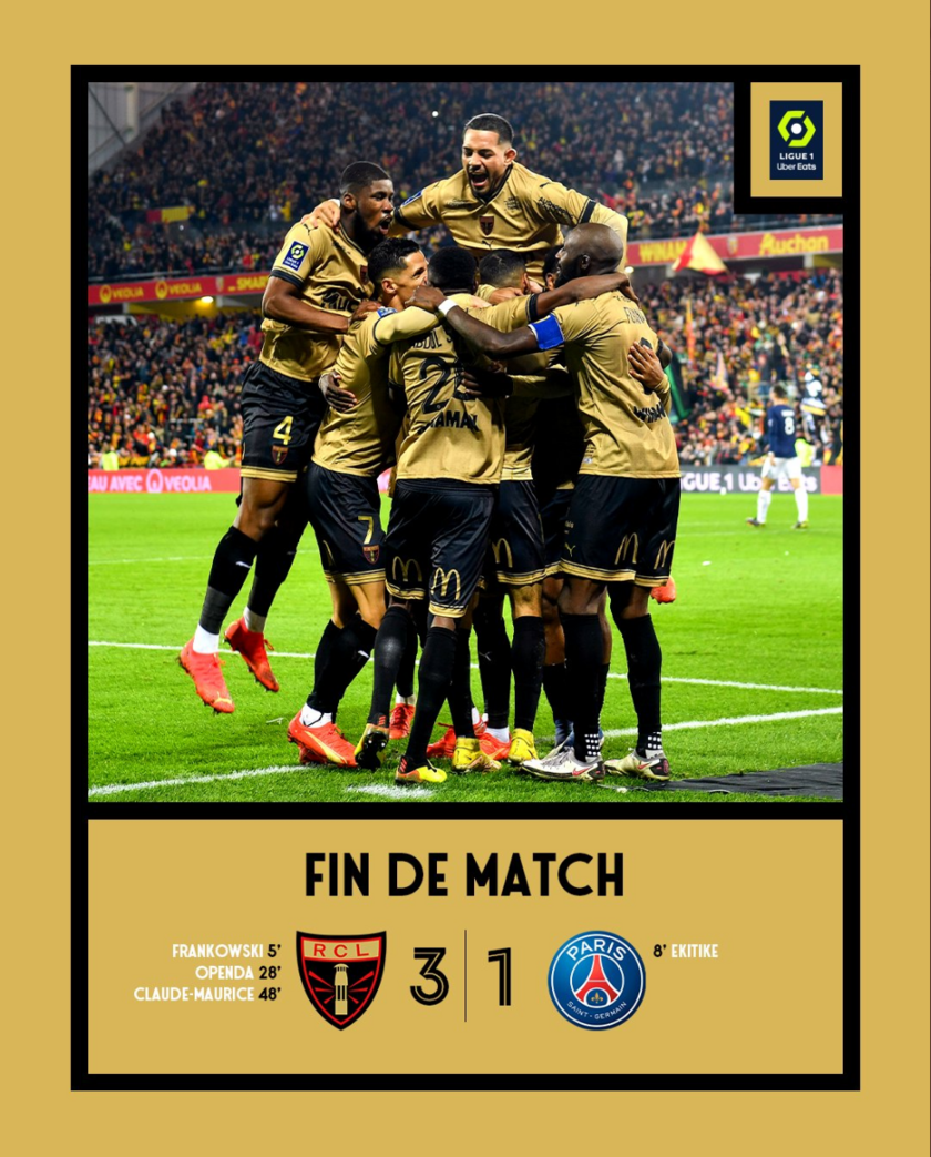 最终巴黎1-3不敌朗斯,遭遇赛季首败。