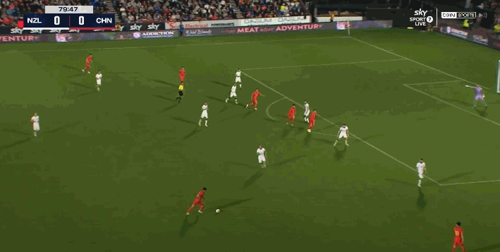 第80分钟,张琳芃右路传中,林良铭头球攻门偏出!