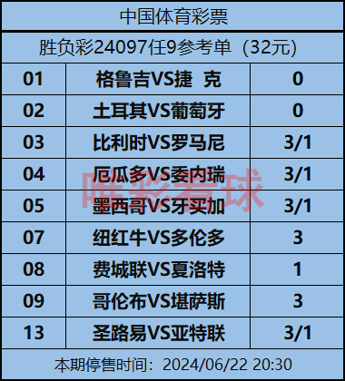 金石开:本期周六彩由欧洲杯、美洲杯和美职联组成。欧洲杯竞猜的是小组赛第二轮最后三场比赛,从指数看,捷克、葡萄牙和比利时都是胆材候选。捷克首轮在补时阶段被葡萄牙绝杀,输得多少有些郁闷,本轮对阵欧洲杯新军格鲁吉亚是他们取胜争取出线的大好机会。这场比赛机构给出捷克1.76的取胜指数,对其取胜前景也是较为看好。对此,你有什么看法?
