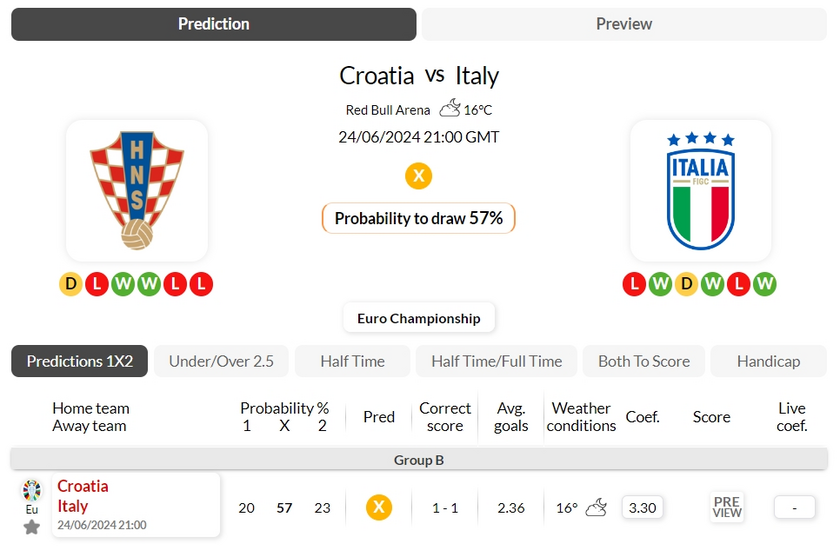 For Italy there have been a series of 4 away all competitions draws at half time