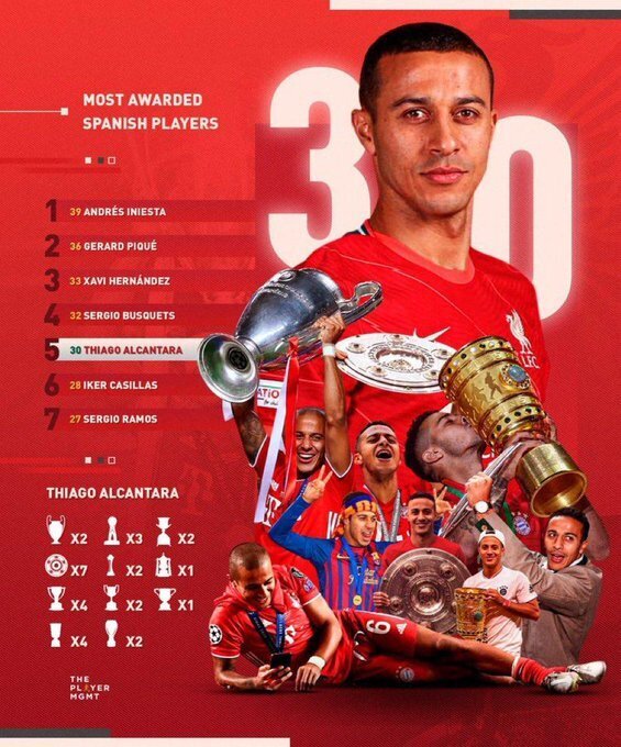 2020年9月,利物浦花费2200万欧元转会费从拜仁签下蒂亚戈。蒂亚戈为利物浦出战98场比赛,打入3球助攻6次,赢得1次足总杯冠军、1次联赛杯冠军、1次社区盾冠军。