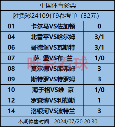 姜山:瑞典超场次本期除了北雪平、埃尔夫斯堡、哥德堡这3个胆材外,惟一的客场胆材是佐加顿斯,他们做客面对保级球队卡尔马。佐加顿斯最近8胜1负,走势相当强劲,而卡尔马则有些飘忽不定,既可以在客场击败中上游的索尔纳,也能在主场不敌布鲁马波卡纳,甚至主场0比4惨败于保级对手瓦斯特拉斯。面对客场近期豪取4连胜的佐加顿斯,卡尔马这场比赛能有爆冷的指望吗?毕竟,他们过去两个赛季都在主场击败过佐加顿斯,多少有点克制对手的意思。