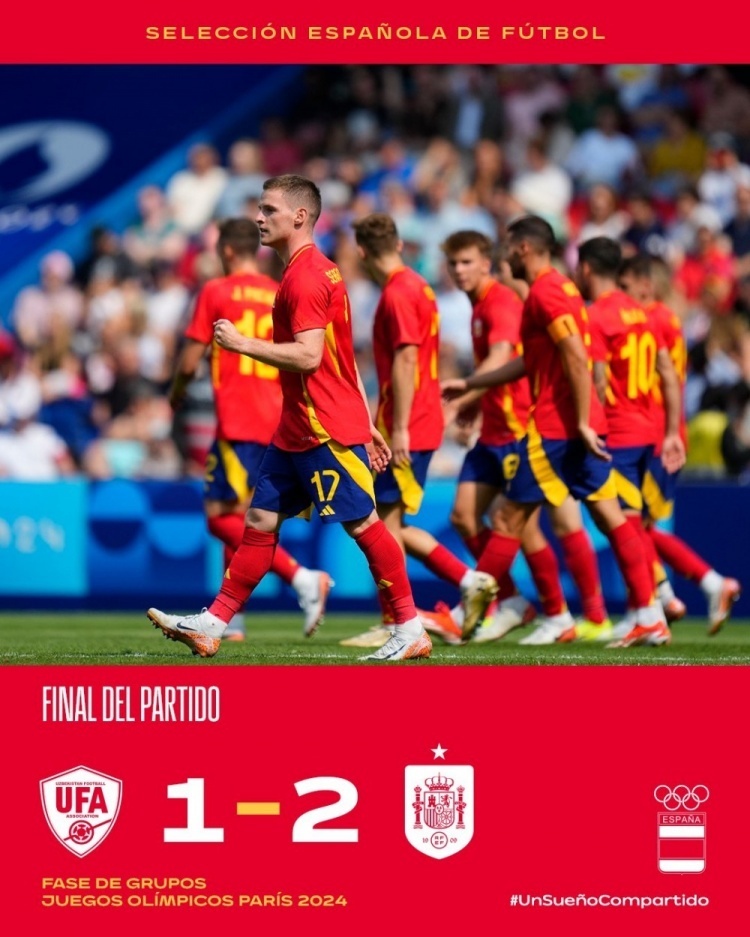 第28分钟,西班牙国奥队取得领先,戈麦斯开出左边路任意球,阿贝尔-鲁伊斯前点头球后蹭,普比尔后点包抄凌空垫射破门,西班牙国奥队1-0乌兹比克斯坦国奥队。