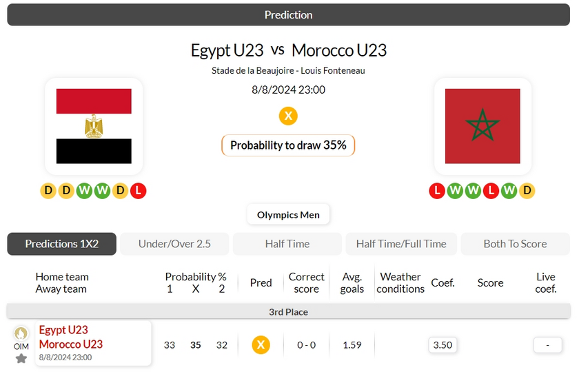 Egypt U23 are conceding an average of 0.60 goals in their Olympics Men games