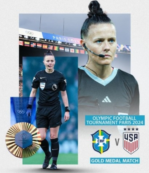 nba直播讯8月8日讯 今天,PGMOL(裁判公司)宣布了执法奥运女足决赛的裁判团队名单,决赛中美国女足将对阵巴西女足,英超历史上首位女性主裁判丽贝卡-韦尔奇担任本场比赛的第四官员。