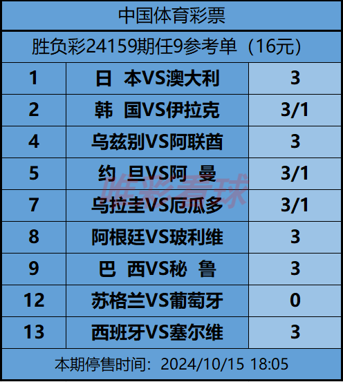 金石开:本期胜负彩由亚洲区和美洲区世预赛、欧国联组成。日本与澳大利亚一战是C组的强强对话,上轮澳大利亚3比1逆转击败国足,拿下本次18强赛的首胜,但球队的表现并不能很令人信服。本轮做客日本,机构给出1.31的主胜指数,对三战全胜的日本队是高度看好。那么,这场比赛是否还会存在悬念呢?