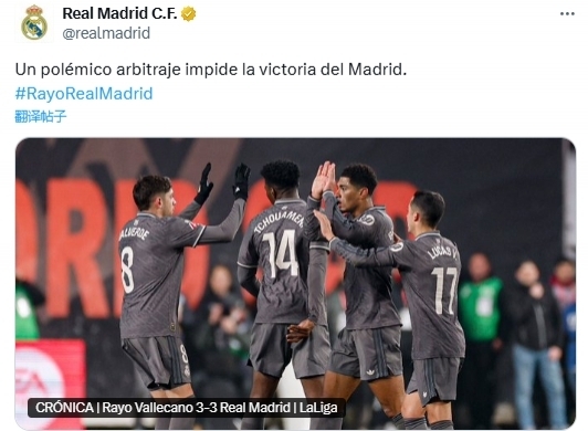 赛后,皇马官方迅速做出反应,其社交媒体账号发布的战报直接将矛头指向此次判罚,以极具冲击力的标题“一个有争议的判罚阻止了皇马获胜”表达满心愤懑,毫不隐晦地指责裁判的这次漏判改变了比赛走势,暗指若点球判罚无误,球队极有可能全取三分,而非收获一场平局。与此同时,皇马官网发布的战报也着重提及此事,详细描述了维尼修斯被穆明踢倒的经过,再次强调主裁及 VAR 在这次判罚中的不作为,字里行间满是对公正判罚缺失的遗憾与不满。
