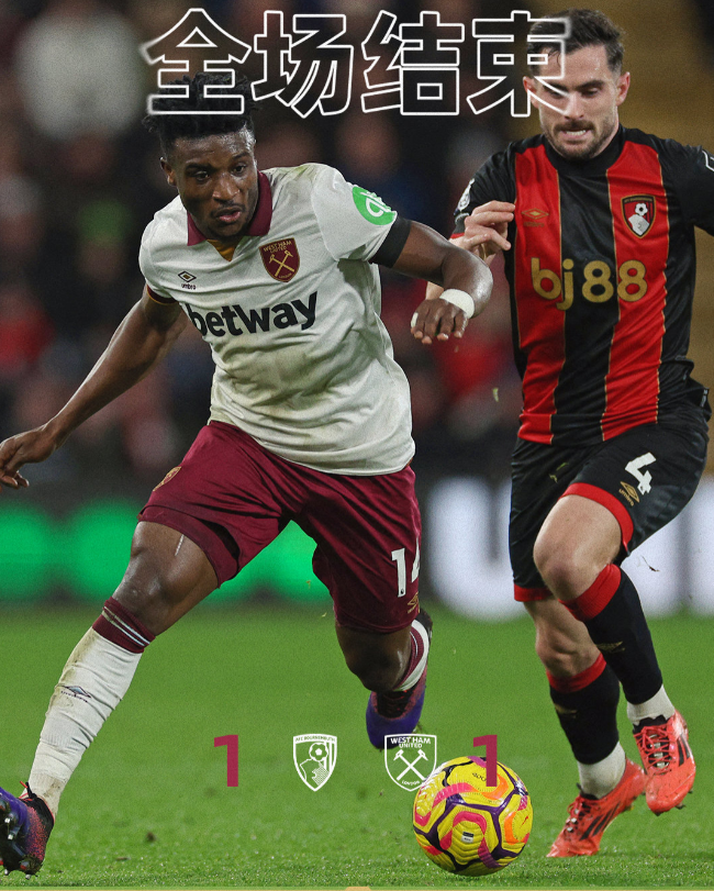 在英格兰足球顶级联赛第16轮的较量中,伯恩茅斯与西汉姆联展开了一场激战。比赛中,西汉姆联的帕奎塔率先罚入点球,为球队取得领先。然而,伯恩茅斯并未放弃,于纳尔随后打入一球,将比分扳平。最终,双方以1-1握手言和,各取一分。