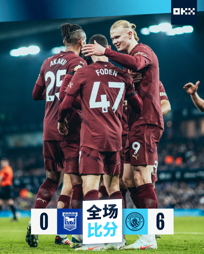 英超第22轮,伊普斯维奇主场对阵曼城。上半场,福登发挥出色,先是一记抽射破门打破僵局,随后助攻科瓦契奇远射建功。德布劳内再送助攻,福登完成梅开二度,职业生涯总进球数达到100球。下半场,多库和哈兰德相继建功,哈兰德收获英超生涯第80粒进球,麦卡蒂头球破门锦上添花。最终,曼城客场6-0大胜伊普斯维奇。