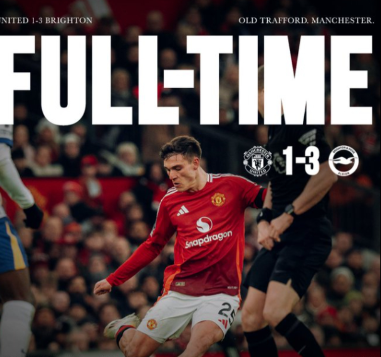 英超第22轮,曼联对阵布莱顿。上半场,明特助攻布莱顿开场闪击,B费点射扳平比分。下半场,尽管若昂-佩德罗的进球被吹无效,但明特助攻三笘薰抢射得手,奥纳纳出现失误,吕特替补建功。最终,曼联主场1-3不敌布莱顿,本赛季遭对方双杀。