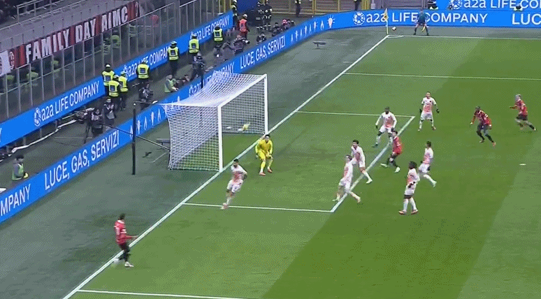 第54分钟,扳回一城,多夫比克后点包抄垫射破门,罗马1-2AC米兰!