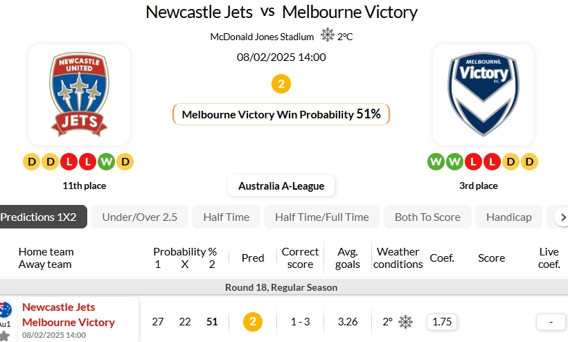 Melbourne Victory haven't suffered any defeats in 6 of their 7 most recent away meetings with Newcastle Jets in A-League
