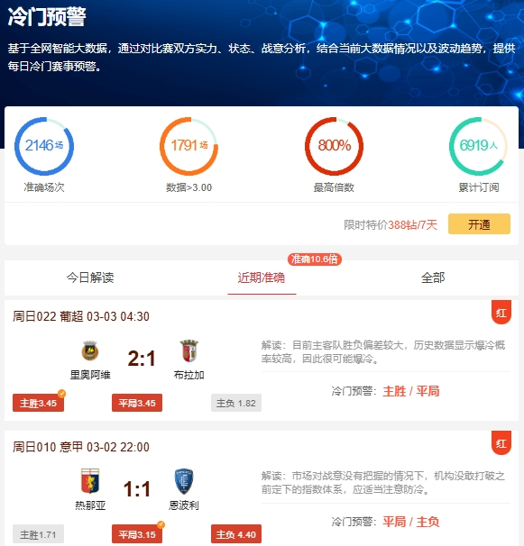 冷门预警