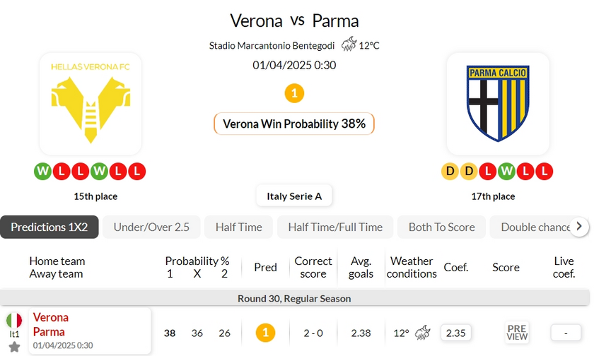 Parma have conceded 12 goals in their last 6 matches against Verona.