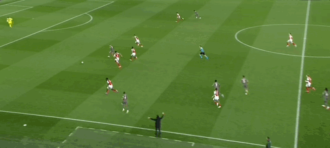 第58分钟,萨卡内切造任意球,赖斯主罚任意球直接破门,皮球划出一道超级弧线,绕过人墙直挂球门死角,库尔图瓦望球兴叹,阿森纳1-0领先。